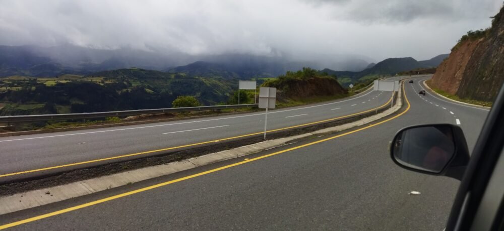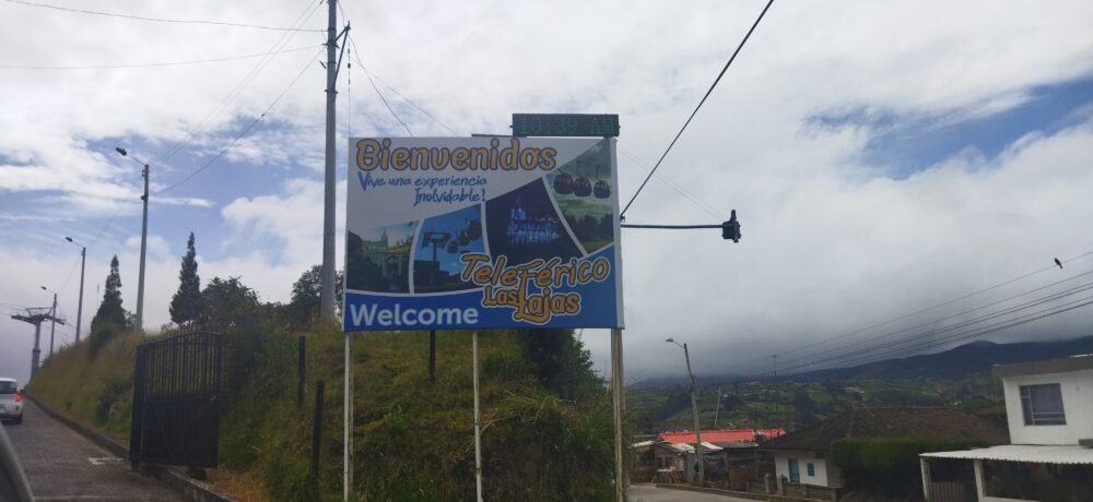 Si deseas disfrutar de un paseo más relajado, puedes optar por tomar el teleférico. Antes de llegar al estacionamiento mencionado previamente, verás un letrero similar al de la imagen que te indicará cruzar a mano izquierda. Puedes acceder tanto a pie como en coche, con un costo de estacionamiento de 4000 pesos colombiano o 1 USD.